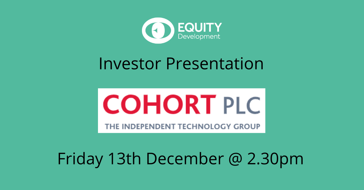 Cohort plc (AIM:CHRT), the independent technology group, will conduct an Investor Presentation covering Interim results for the six month period to 31st October 2024.