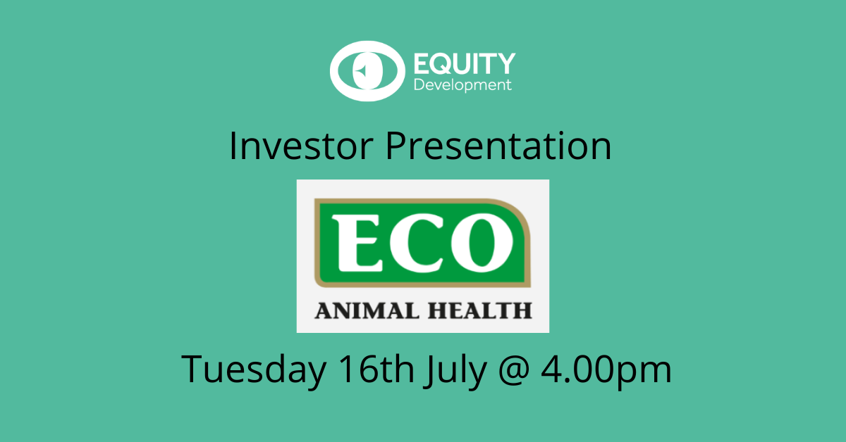 The online event will take place at 4.00pm on Tuesday 16th July and will be hosted by David Hallas (CEO) and Chris Wilks (CFO) of ECO Animal Health.