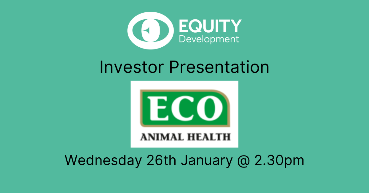 ECO Animal Health Group plc (AIM: EAH), a leader in the development, registration and marketing of pharmaceutical products for global animal health markets, is pleased to announce that Marc Loomes, CEO, and Christopher Wilks, CFO, will be conducting a live presentation following their Capital Markets Day to professional investors in the morning.