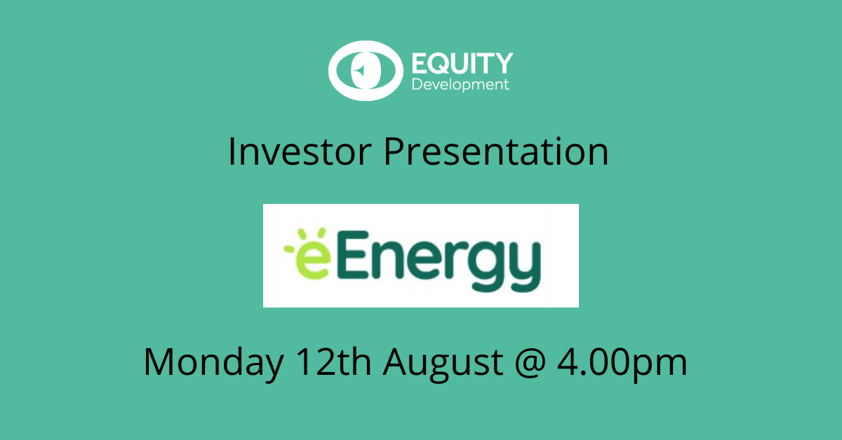 eEnergy (AIM: EAAS), the net zero energy services provider, is pleased to conduct an online Investor Presentation on Monday 12th August at 4.00pm (BST).