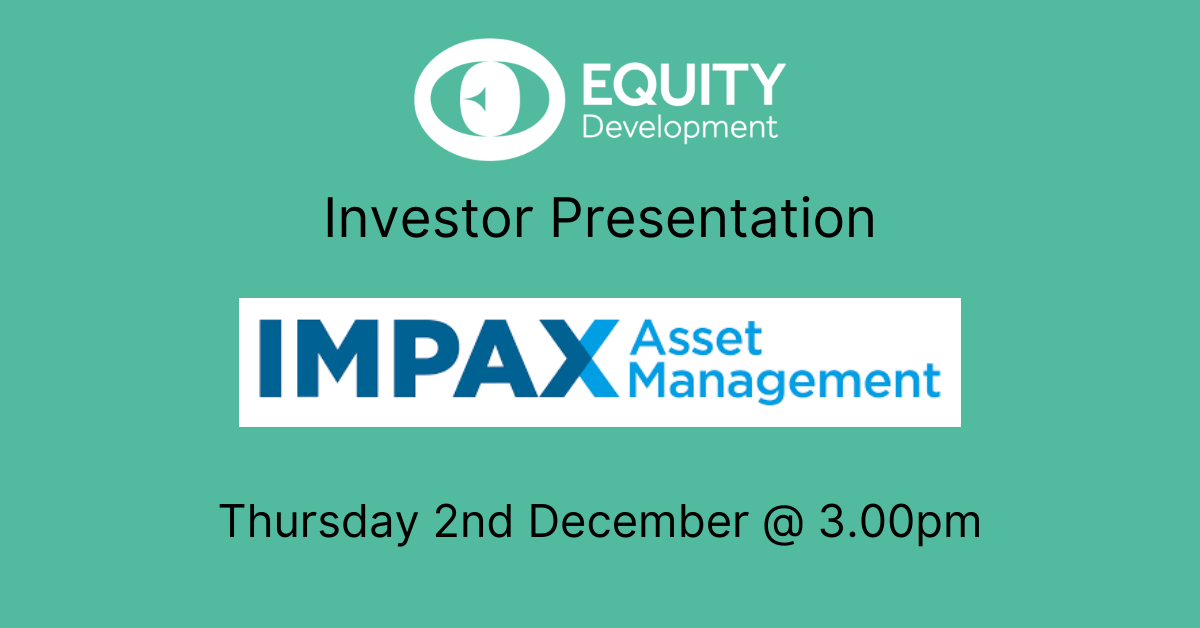 Impax Asset Management plc (AIM: IPX), leaders at investing in companies helping the transition to a more sustainable global economy, is pleased to announce that their CEO, Ian Simm and CFO, Charlie Ridge will conduct a live presentation at 3.00pm on Thursday 2nd December.