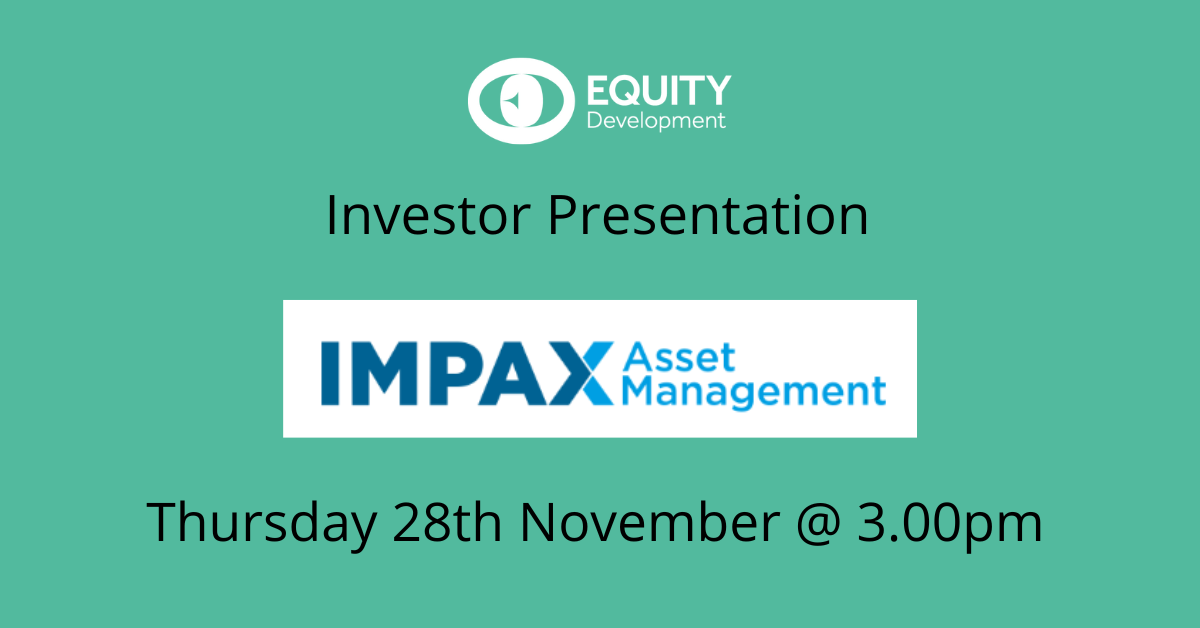 Impax Asset Management plc (AIM: IPX), leaders at investing in companies helping the transition to a more sustainable global economy, is pleased to announce that Ian Simm (CEO) and Karen Cockburn (CFO) will conduct a live presentation reviewing their results for the 12 month period ended 30 September 2024.