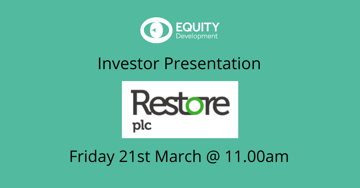 Restore (AIM: RST), the UK's leading provider of digital and information management and secure lifecycle services, will be hosting an Investor Presentation covering its Full Year results for the period ended 31st December 2024.