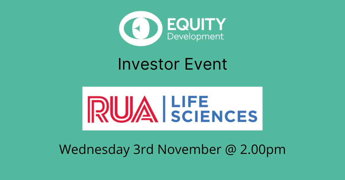 The executive team of RUA Life Sciences plc will be hosting an investor event on Wednesday 3rd November at 2.00pm.