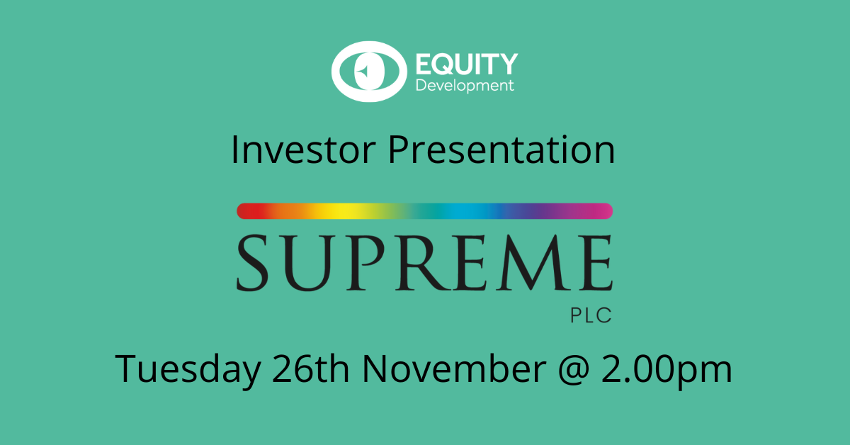 Supreme (AIM:SUP), a leading manufacturer, supplier and brand owner of fast-moving consumer products, will be conducting an Investor Presentation covering its interim results for the six-month period to 30th September 2024.