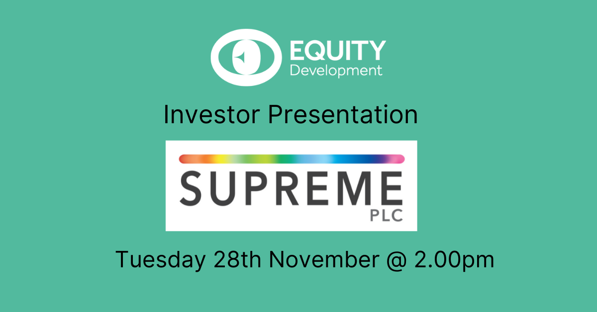 Supreme (AIM:SUP), a leading manufacturer, supplier and brand owner of fast-moving consumer products, will be conducting an Investor Presentation covering its interim results for the period to 30th September 2023.